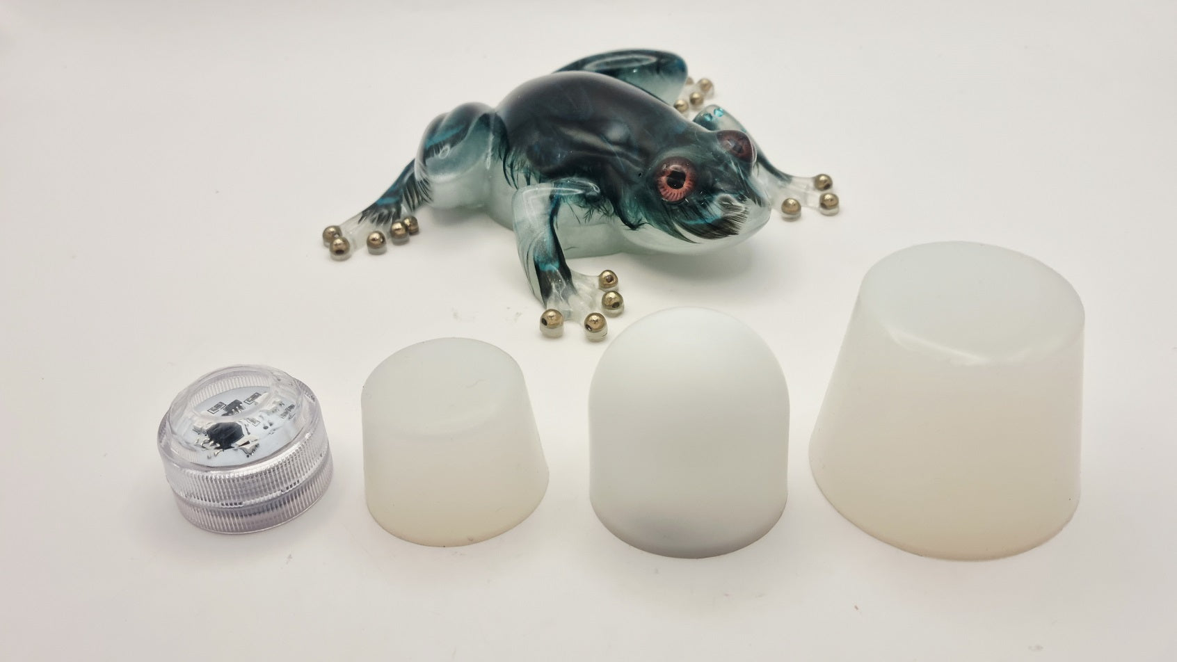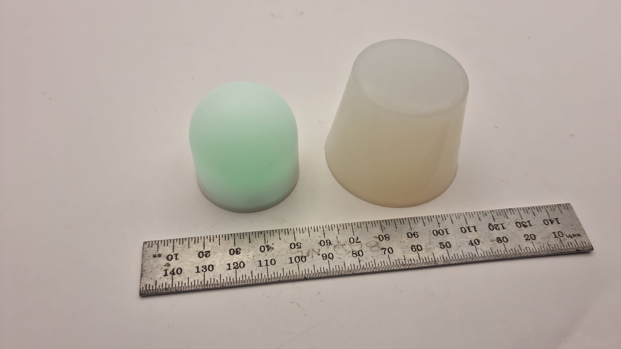 Our Small silicone plug for epoxy resin art is approx. 3.5 cm wide (base) x 2.5 cm heigh and are perfect to fit inside the standard 13 cm Frog Silicone Mold (4 oz) or the Let's Resin Standard Axolotyl Silicone Mold (4.5 oz).