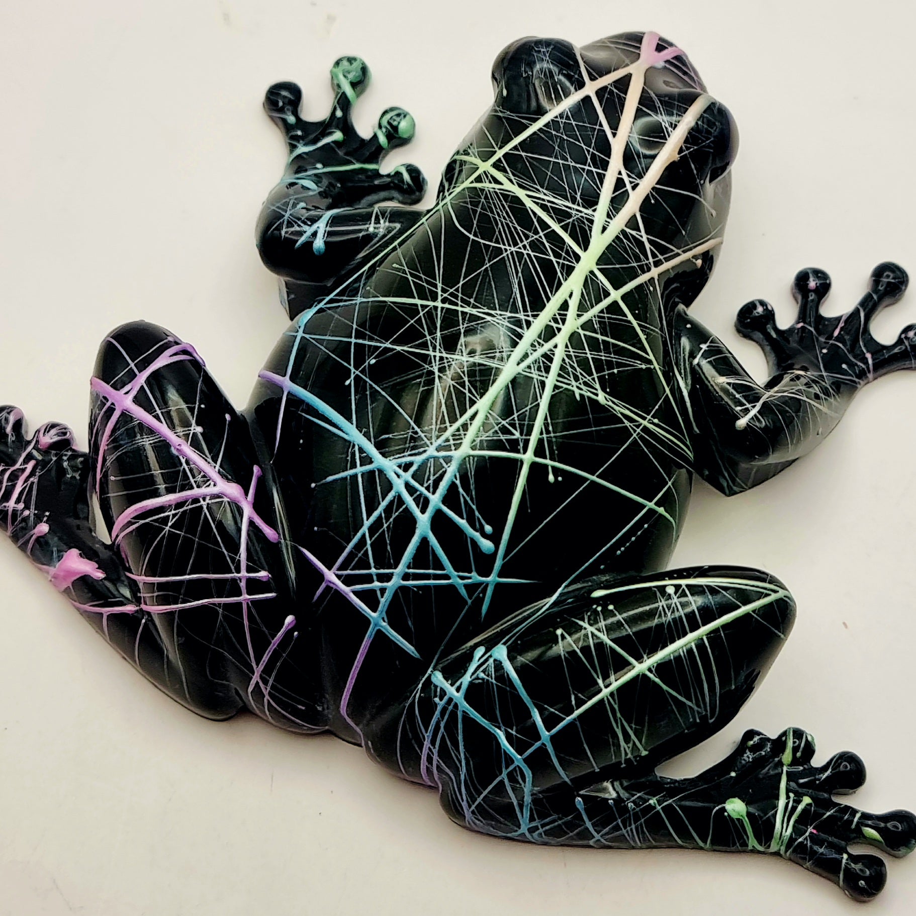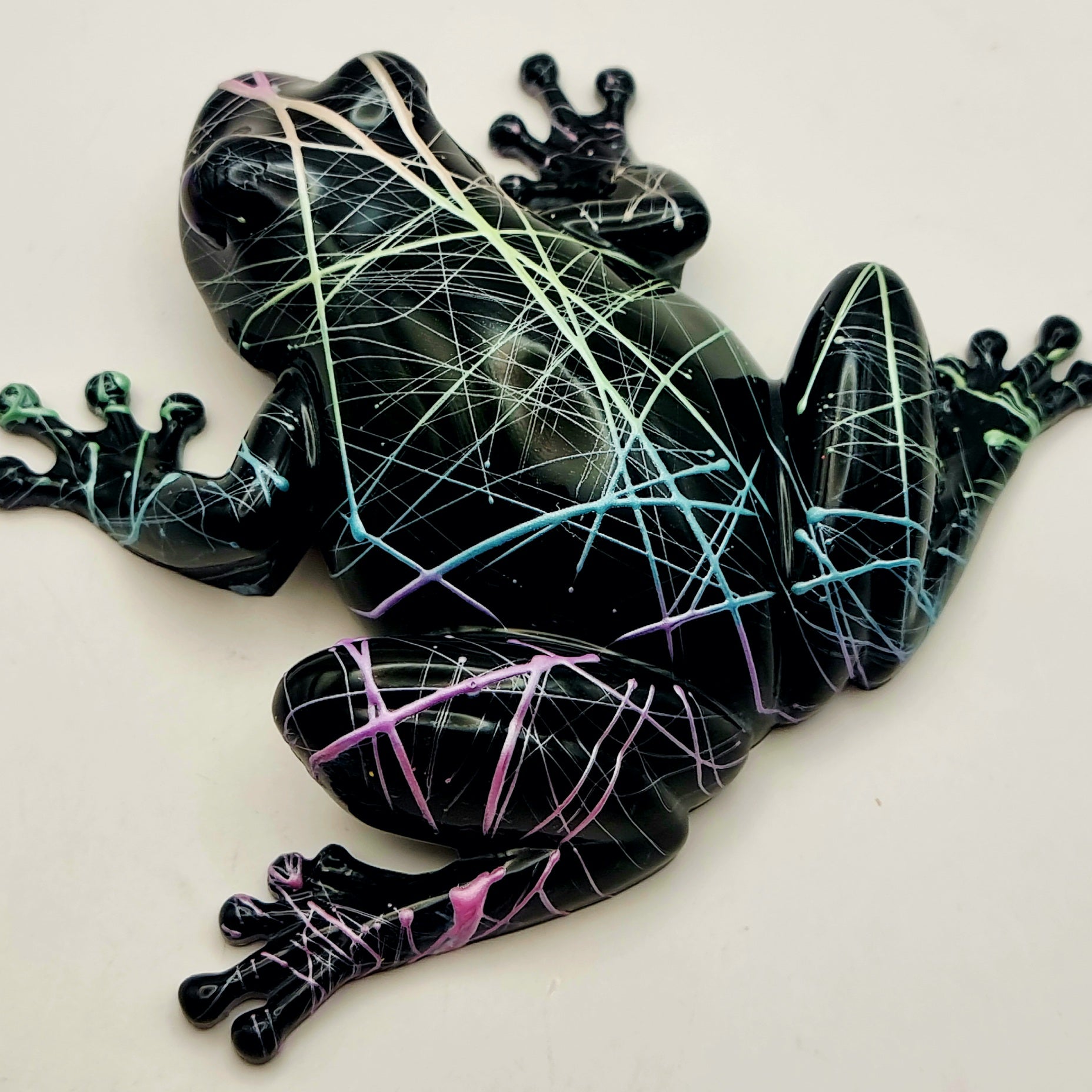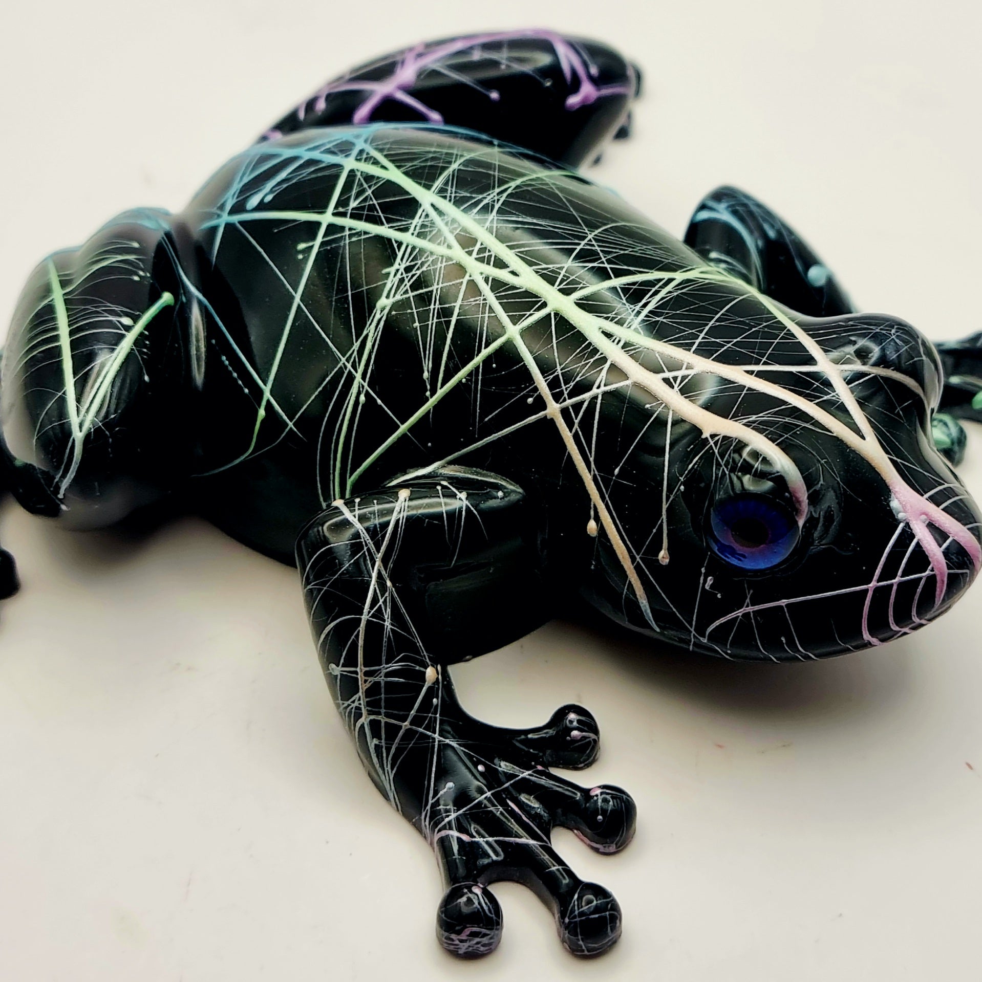 Charm your guests with this absolutely gorgeous, handcrafted bright and colourful resin Frog Figurine! This one-of-kind frog brings a splash of colour to any home decor. Crafted with intricacy and care and featuring Spider Gel stripes, this unique resin frog makes a perfect addition for frog-lovers and those who appreciate unique gift ideas.